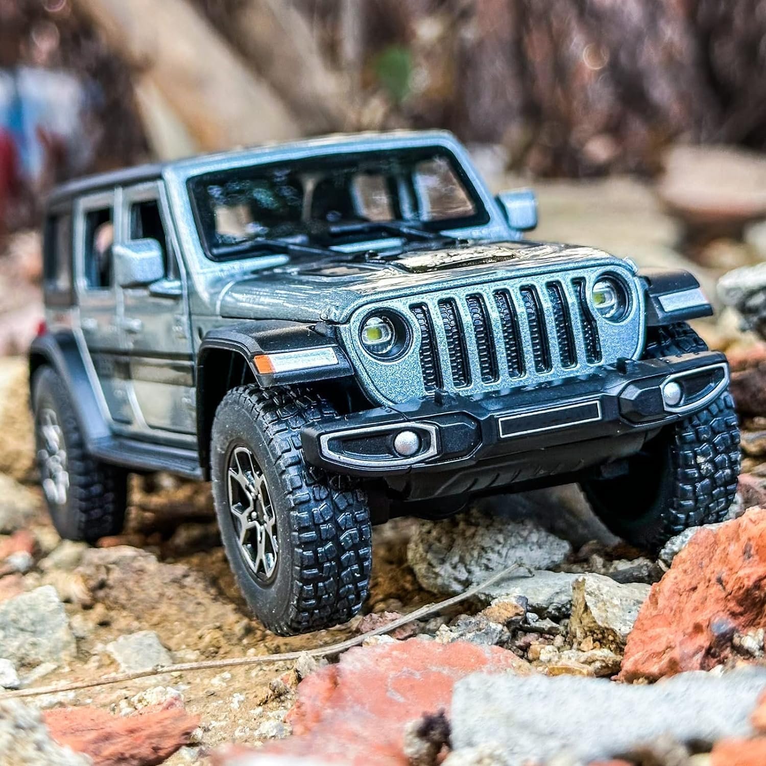 Temzo Exclusive Alloy Metal Pull Back Die-cast Car Model with Sound Light Mini Auto Toy for Kids Metal Model Toy Car with Sound and Light [New Model] (1.32 Scale -Rubicon CAR-Grey)